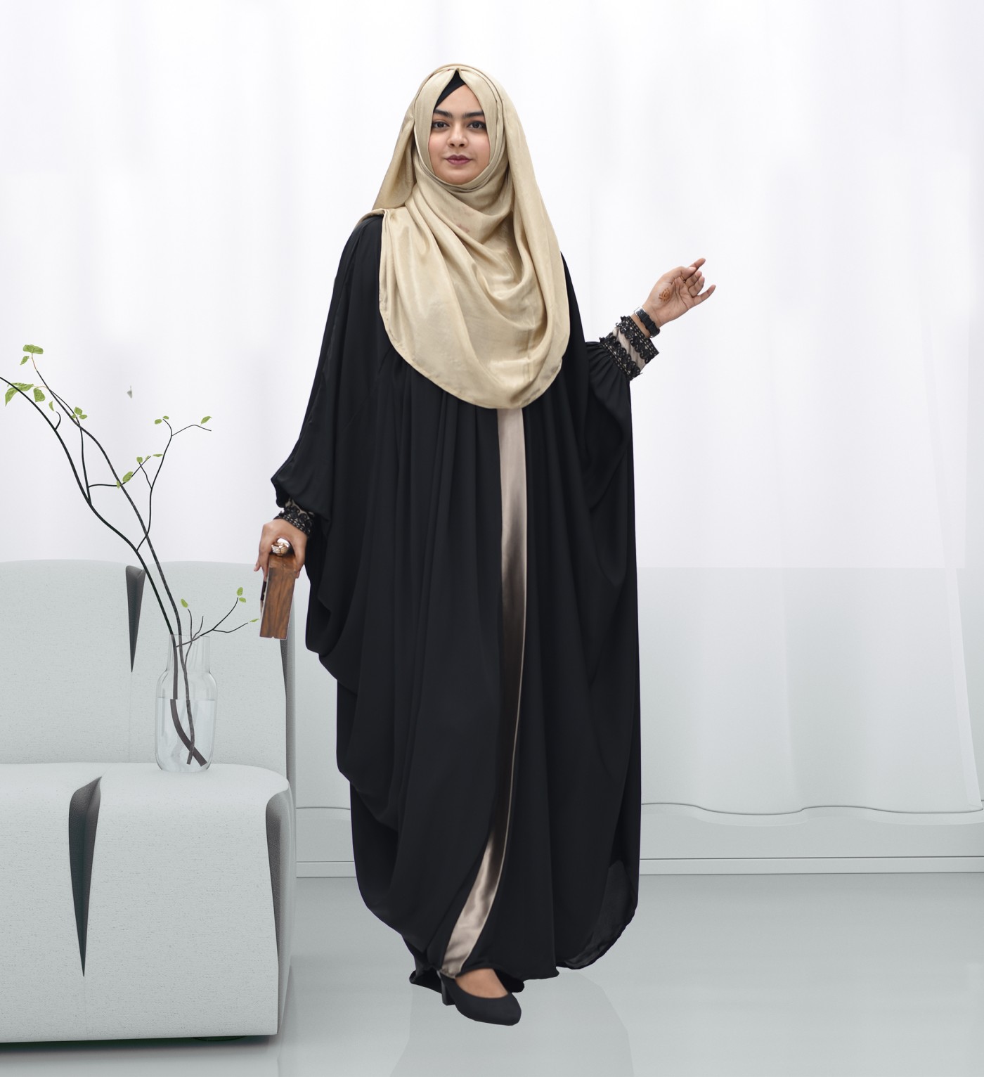 Note: Without hijab The fabric color may appear slightly different due to camera resolution and various lighting conditions. Certain lighting may alter the perceived color of the fabric.